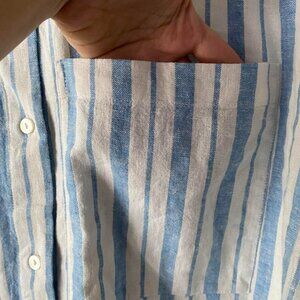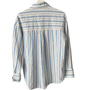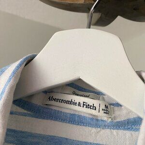 NWT Abercrombie Blue and White Striped Linen and Cotton Blend Button Down Size M
