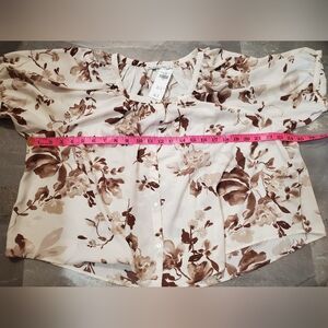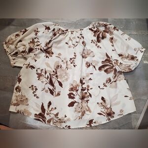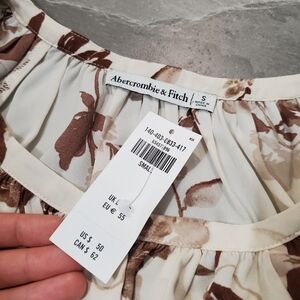 NWT Abercrombie & Fitch Floral Cream & Brown Button Down Blouse Top. Size S, Oversized, see pictures for measurements. Fabric is flowy, lightweight and comfy. Puffy short sleeves. No stain, no rip. Non smoking house.