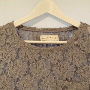 NWT Abercrombie & Fitch Kylie Floral Lace Scoop Neck Gray Shirt Women's S