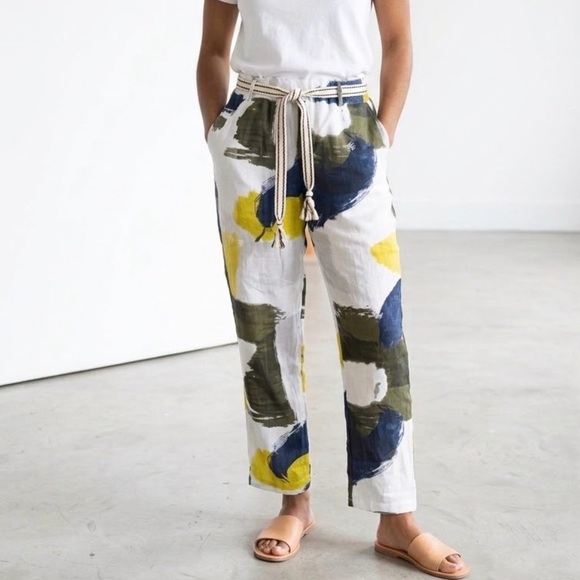 NWT Abstract Print Linen Drawstring Pants