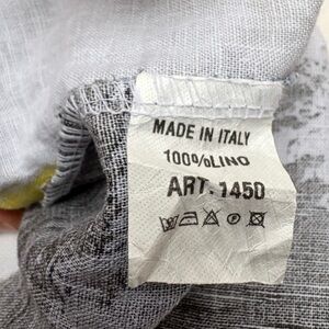 100% linen pants with elastic waist. 2 pockets in front. Faux pocket flap in the back. Belt loops and cord. Made in Italy.