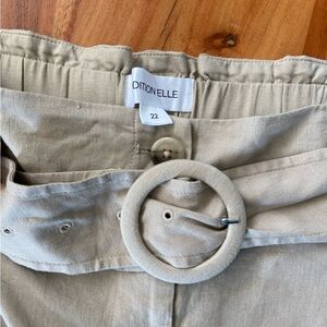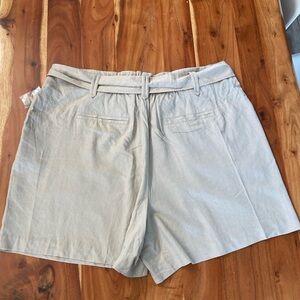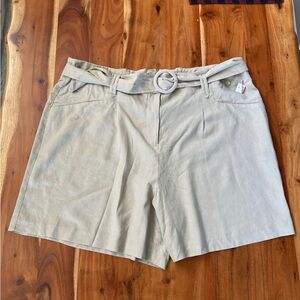 NWT Addition Elle Khaki Beige Bermudas Linen Blend Tailored Fit Belted Shorts