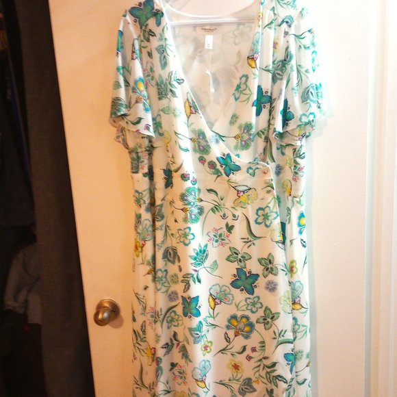 NWT Addition Elle White Blue Print Crossover Front Dress, Size 18, Host Pick