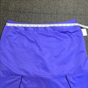 Comfortable stretchy shorts under this cute purple skirt. Side zippoer. Piping detail at slits near bottom. Dog friendly, smoke free home.