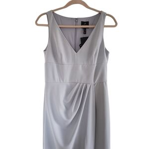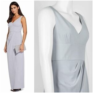 NWT Adrianna Papell Silver Gray Sleeveless Draped Formal Maxi Column Dress
