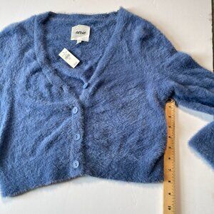 NWT Aerie Fuzzy Blue Button Up Cardigan Sweater Size Medium