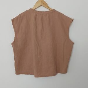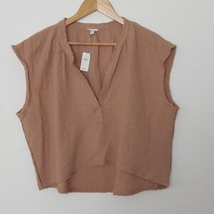 NWT Aerie Gauzy 100% Cotton Sleeveless Crop Top Frayed Light Brown Size Medium. Oversized.