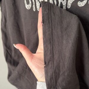 Fun and edgy Aerie graphic tee with “Ghosting You” print across the front. Made in soft, lightweight cotton, this washed black tee features white retro-style lettering across the front and intentional raw-edge distressing at the sleeves and hem for a worn-in, vintage look. Perfect for casual outfits with jeans, leggings, or layered under a jacket.