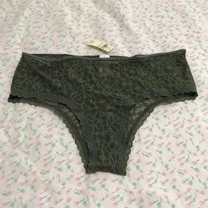 New with tags, never worn. Royal Palm dark green color. Lace Lurex Cheeky Underwear size large (L).