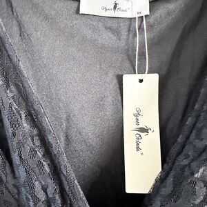 New With Tags - Lovely Agnes Orinda black dress with a lace overlay. Dress has elbow length sleeves and sits just above the knees.