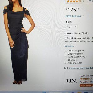 A brand new with tag Alex Evenings Woman cold shoulder long evening dress in black. Plus size 16W. Mesh fabric with a lot of give. Beautiful dress. Purchased on Amazon for $156+tax, missed return window. Here's the link to the dress on Amazon: https://www.amazon.ca/dp/B0092TJNSA/ref=cm_sw_r_awdo_navT_g_DEP6KXRK4P0VVBHPA6TJ?th=1&psc=1