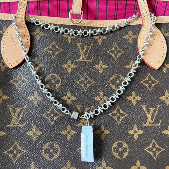@carolinelsj Hi Caroline, The Spear and Circle chain as you see here is Rafaelian silver. Alex and Ani bracelets have 3 kinds of "silver". The "shiny silver" is very shiny and looks like the real silver and does not tarnish. The Rafaelian silver is darker and looks antiquish without the shine, but does not tarnish or get darker with wear. Then there is the real silver plated and that is silver plated over brass.