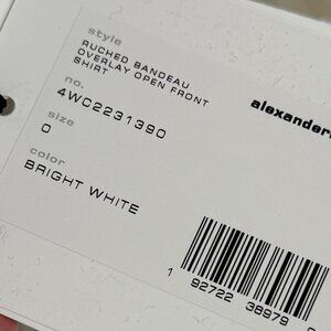 NWT Alexander Wang Ruched Bandeau Open Front Shirt in Bright White size 0