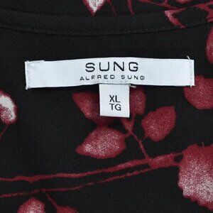 NWT Alfred Sung Floral Tank Top Black Red Sleeveless V-Neck Size XL