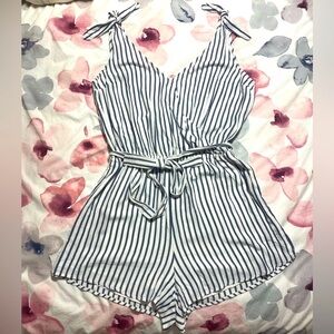NWT Ambercrombie & Fitch V-Neck Belted Striped Romper Size XL