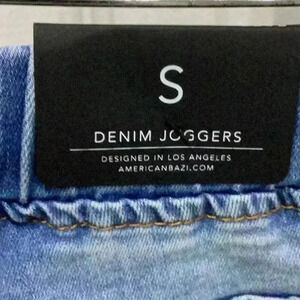 Brand new! Designed in Los Angeles. 97% Cotton, 3% Spandex. Stretch denim. Drawstring and elastic waist.
