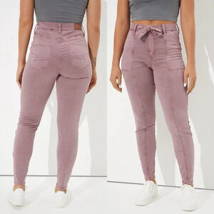 NWT American Eagle AEO Hi Rise Jegging Super Stretch Mauve Lilac Pants Tie Sz 0