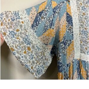 NWT American Eagle Floral Patchwork print Boho Peasant Blouse top women’s size M