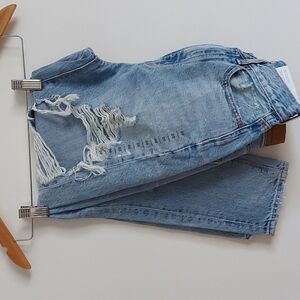 NWT American Eagle Highest Rise Mom Jeans. Size 00/24. Heavily Distressed. Light Wash. Excellent new condition.