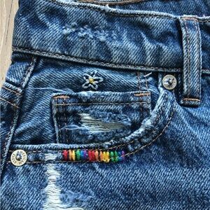 NWT American Eagle Love Embroidered Highest Rise Baggy Short Distressed Size 000
