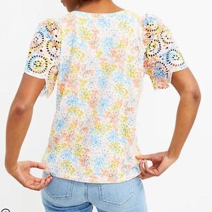 New with Tags - LOFT- Petite Hydrangea Eyelet Flutter Sleeve Tee🌸🌼