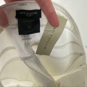 NWT Ann Taylor Modern Fit Slim Leg White Jeans Size 12 High Rise Minimalist Pant