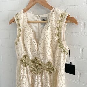 NWT Anna Sui Anthropologie Lonoke Crochet Ivory Cream Lace Sheath Dress Size 0