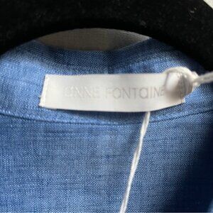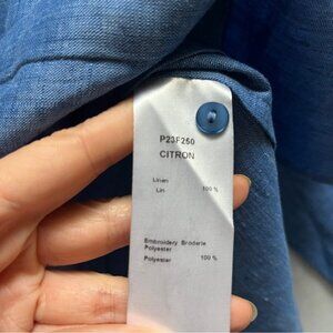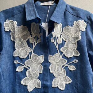 NWT Anne Fontaine Citron Blue Linen floral Appliqué Button down Shirt