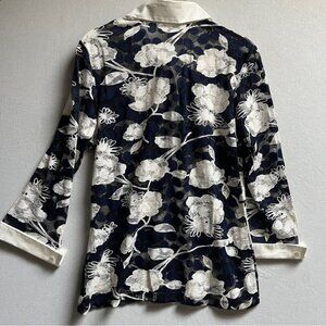 NWT Anne Fontaine Vaxy Navy And White Floral Lace Poplin 3/4 Sleeve Shirt