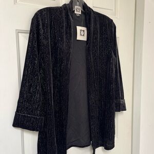 NWT Anne Klein Black Metallic Open Front Velvet Blazer S