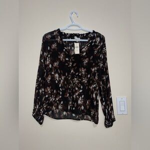 NWT Anthropologie Cloth and Stone Dark Romantic Black Brown Floral Blouse XXS