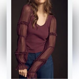 NWT Anthropologie Long Sleeve Victorian Ruffled Top XXS Cocoa