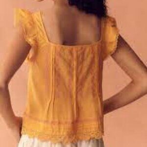 Gorgeous flowy cotton Flutter-Sleeve Pintuck Top from Anthro brand Maeve. Button front with embroidery detailing.