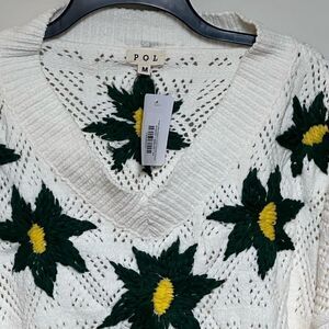 NWT Anthropologie POL Angie Open Weave V Neck Chenille Sweater Sz M