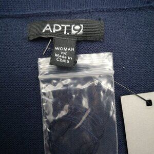NWT Apt. 9 Ladies Size 1X Navy w/ Teal Front Layered Insert Belted Cardigan