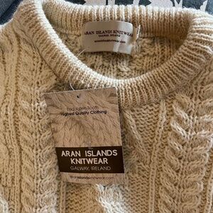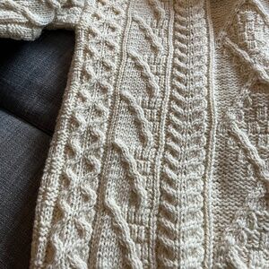 New, no flaws. 100% wool. Various cable patterns (see tag closeup for pattern info).