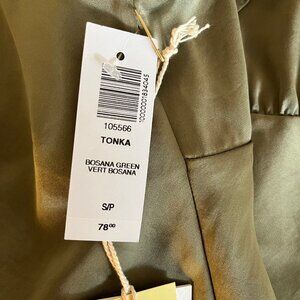 This is a sleeveless ruffled blouse with a V neckline and bias cut. It's made from Effortless Satin™ — drapey, lightweight Japanese satin with a glossy look and feel.