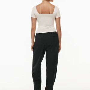 Colour is Light Birch (check out my closet to see if there are any Light Birch pants left in your size). This is a squareneck tee with double-layer fabric for a supportive fit. It’s made with Aritzia’s Original Contour — luxe, ultra-flattering fabric coveted for its smoothing effect and second-skin feel. Nothing more essential. Hidden Hold Loops keep your bra straps in place and out of sight.
