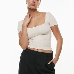 NWT Aritzia CONTOUR Squareneck Short Sleeve Light Birch S