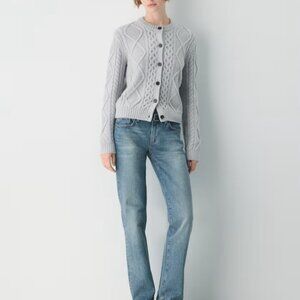 NWT Aritzia Heritage Knit Merino Wool Crew Cardigan Heather Chrome M