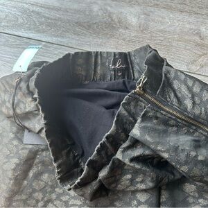 NWT Aritzia Talula Black & Bronze Abstract Patterned Flared Mini Skirt