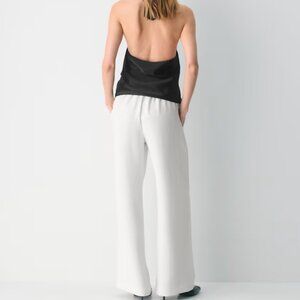 Colour is Light Birch. (Search my closet for coordinating Light Birch items if still available). These are relaxed wide-leg pants with a high rise, inseam pockets and an elastic waist. They’re made with Crepette™ — our one-of-a-kind Japanese crepe fabric beloved for its subtle texture, breezy drape and the fact that it basically never wrinkles.