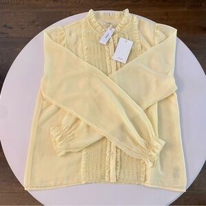 NWT Aritzia Wilfred Butter Yellow Button-Up Tuxedo Chiffon Fiji Blouse