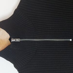 NWT Asos 1/4 Zip Ribbed Knit Long Sleeve Mockneck Tunic Length Sweater Size XS. Black. Lots of Stretch.