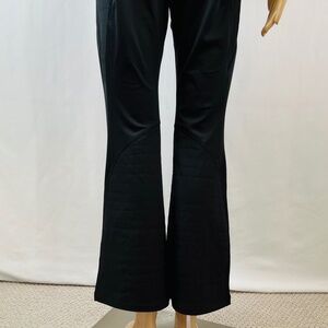 These Athleta Peak Hybrid Fleece Pants are made from a lightweight plush stretch fleece-lined material that provides a soft, brushed interior. Nylon panels adorn the back of the waist, thighs and back of calves. The pants are semi-fitted, skimming easily over the leg and widening below the knee to a flared leg that accommodates boots.