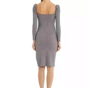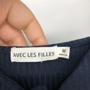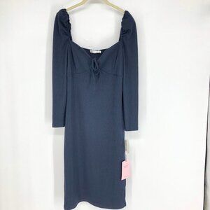 NWT Avec Les Filles Navy Ribbed Knit Prairie Dress Long Sleeve Midi size M