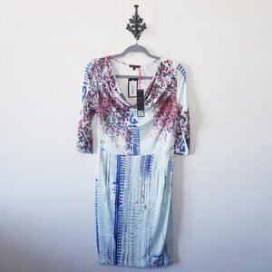 NWT Aventures des Toiles Multicolor Abstract Cowl Neck Long Sleeve Dress Size 38