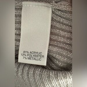 New with tag (includes extra yarn!) Beautiful women’s ribbed open front cardigan - size 22/24 (Size visual on photo #4) Perfect for layering. This sweater also has a bit of sparkle all over -great for special occasions or everyday wear. Made of acrylic, polyester & metallic.