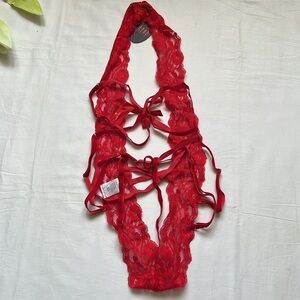 NWT Avidlove Women Deep V Halter Lingerie Teddy One Piece Lace Babydoll Bodysuit