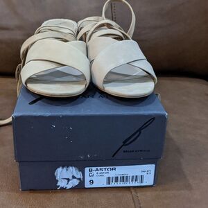 NWT B Brian Atwood | Astor Tie Up Leather Mules in Camel